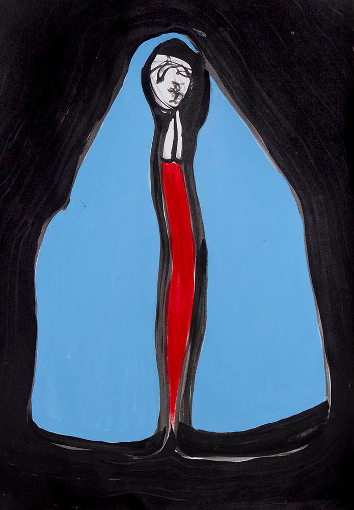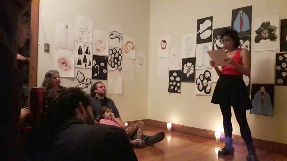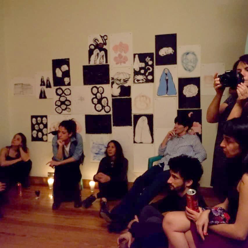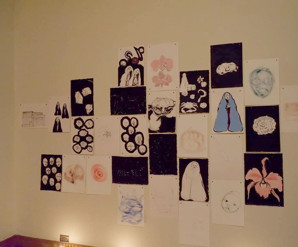Titulo: Homenaje a Angela Matías Técnica Políptico de 107 dibujos, acrílico sobre papel y dos cartas. Obra realizada en el marco de la residencia de Arte Contemporáneo La Verdi CDMX Año 2019
